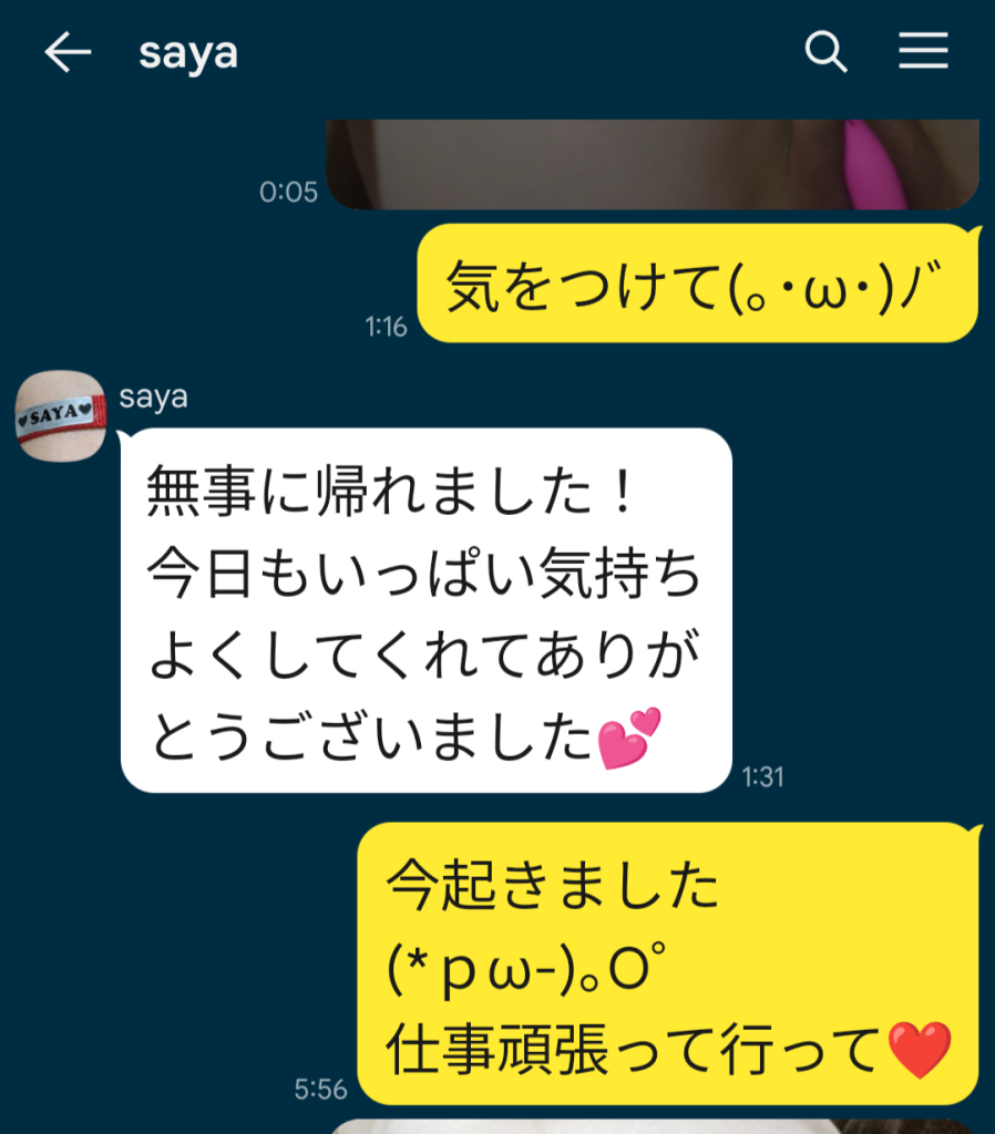 計3時間たっぷりイカせて帰宅したsayaからお礼のメッセージが来ていた。